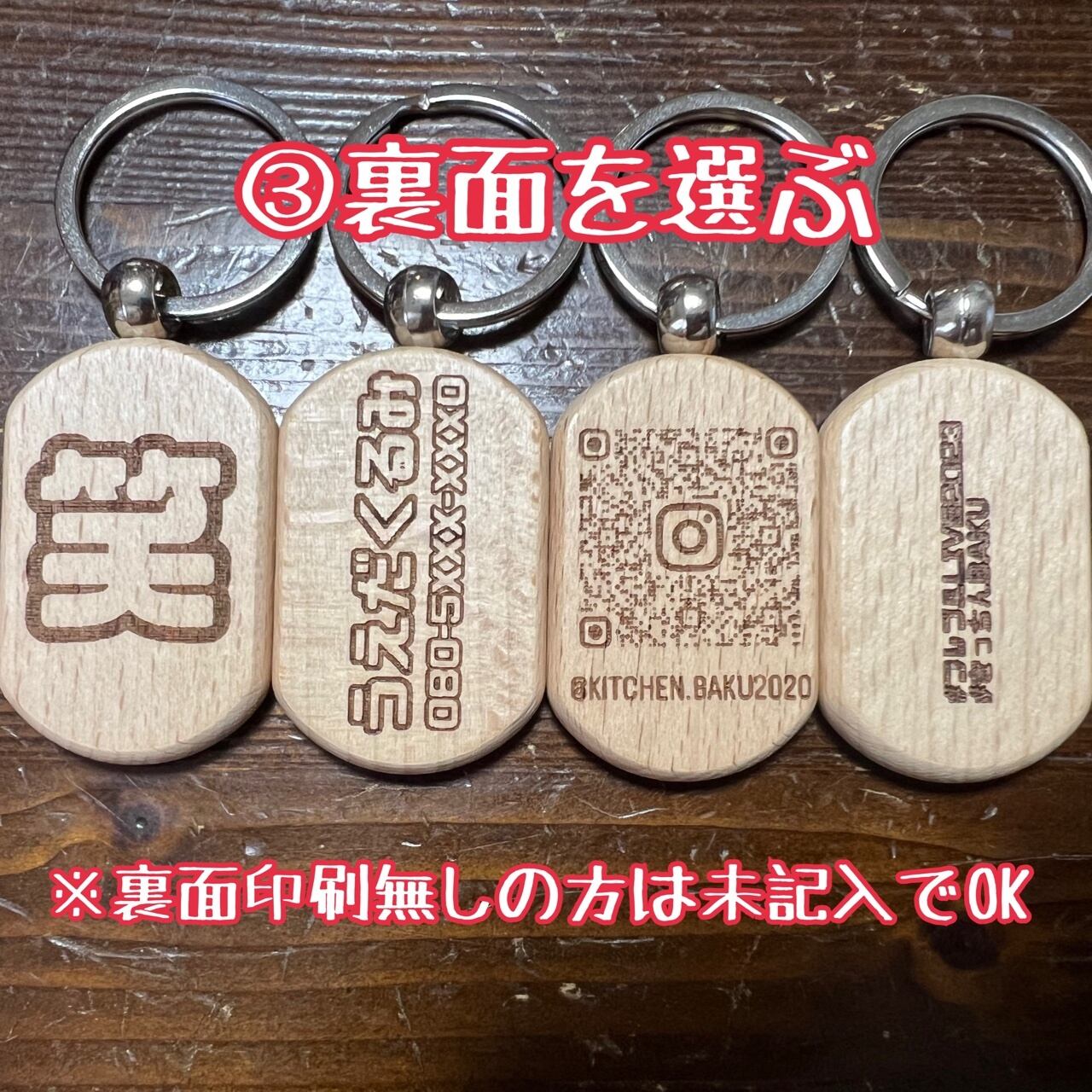 裏面に刻印する文字orQRコードを送っていただきます。